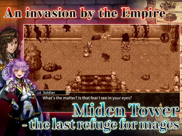 Miden Tower est un jeu de rôle fantastique au scénario captivant et dramatique. Après l’invasion de la tour Miden par l’Empire Alroval, les mages qui y vivent se retrouvent coincés dans ses étages supérieurs. Ceci déclenche une série d’événements tragiques qui mènent au lancement d’une contre-offensive pour reprendre la tour et se venger des torts subis.