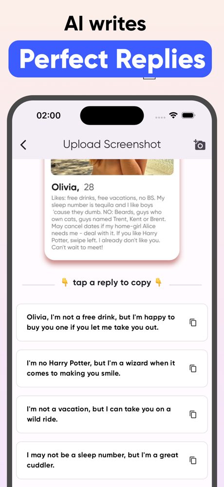 Transformez vos conversations grâce à notre application améliorée, conçue pour donner une nouvelle dimension à vos interactions sociales. Voici pourquoi elle est indispensable : Phrases d’accroche instantanées à partir des bios : Transformez les captures d’écran de profil en phrases d’accroche spirituelles et personnalisées, parfaites pour une première impression mémorable ou pour raviver la flamme dans une conversation. Générateur de réponses innovant : Importez des captures d’écran de vos discussions pour recevoir des réponses personnalisées et contextuelles, et ainsi préserver la fluidité et le charme de vos échanges.