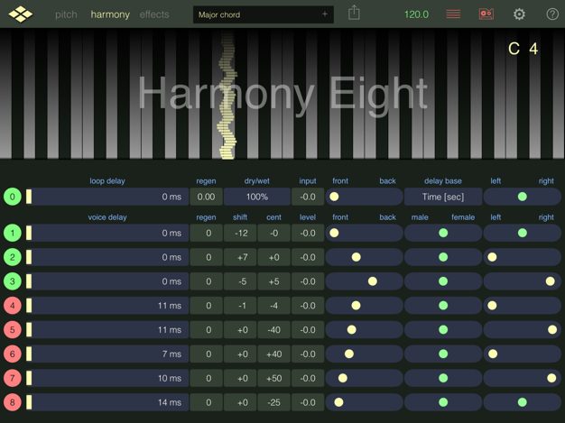 Jusqu’à huit voix transposées sont créées à partir de signaux vocaux ou instrumentaux. Des algorithmes distincts permettent une transposition optimale des voix/instruments monophoniques et de tout autre type de signal audio.