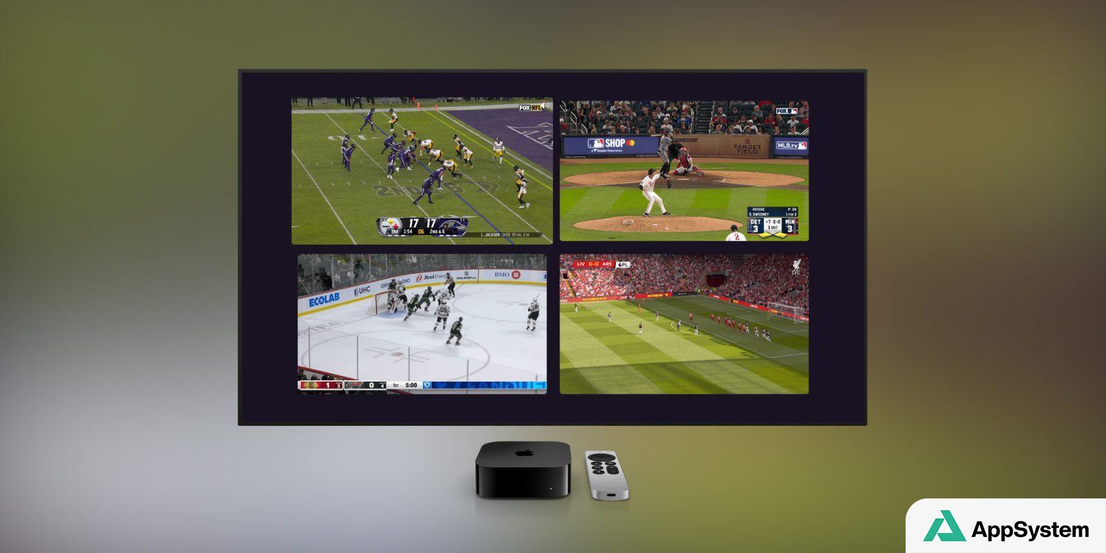 La grande nouveauté, c’est bien sûr le Multiview sur Apple TV 4K et iPad, qui vous permet désormais de suivre jusqu’à quatre chaînes en direct en simultané. Vous pouvez surveiller plusieurs événements sportifs ou chaînes d’info à la fois. Disponible par le menu contextuel, vous pouvez ajouter des chaînes grâce au Guide rapide intégré.