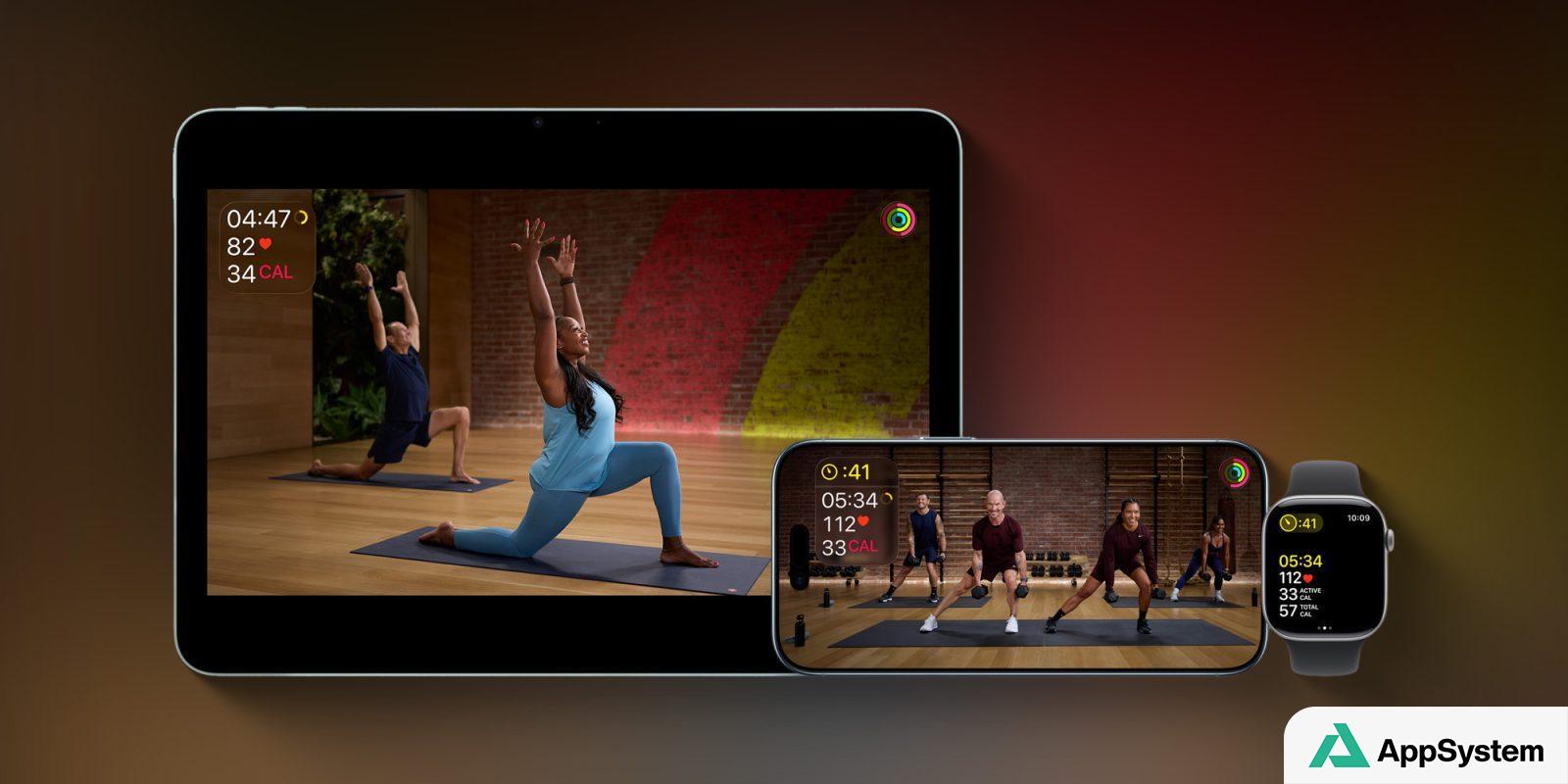 Apple Fitness+ fonctionne sur iPhone, iPad et Apple TV. Avec une Apple Watch ou des AirPods Pro 3, les métriques personnelles s’affichent à l’écran, notamment la fréquence cardiaque en temps réel et les calories brûlées.