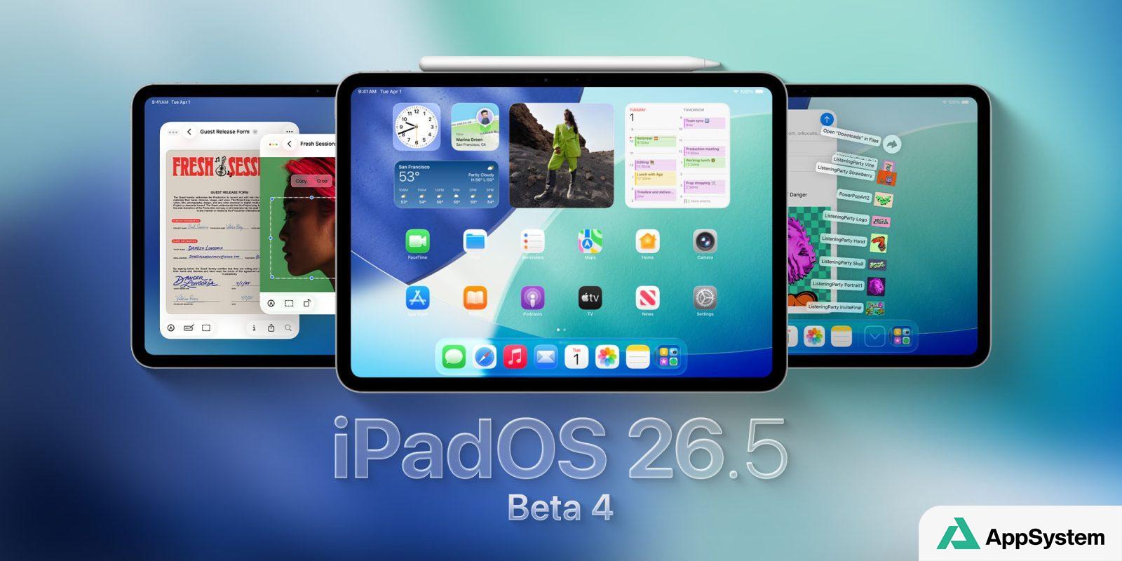Apple accélère le déploiement de sa vague de mises à jour « 26.5 » avec la mise à disposition des versions bêta 4 pour plusieurs plateformes, dont iPadOS 26.5 et tvOS 26.5.