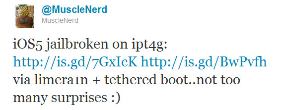 C’est avec un peu de surprise que MuscleNerd a annoncé que la faille et l’exploit de Limera1n n’avaient tout simplement pas été comblés dans l’iOS 5 beta 1 distribué hier aux développeurs, et que par conséquent cet iOS était *parfaitement* jailbreakable.