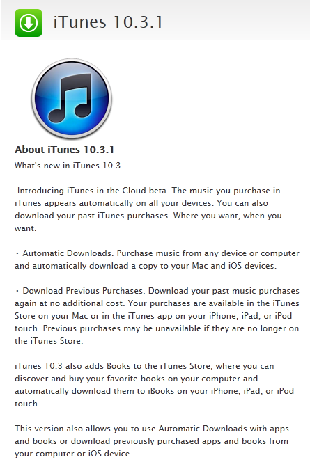 Après la version 10.3 d’iTunes relâchée Lundi à la fin de la présentation de la WWDC 2011, Apple n’a pas perdu de temps pour corriger quelques bugs et sortir la version 10.3.1 d’iTunes pour Windows et Mac.