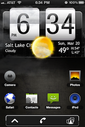 Pour mettre la température en degrés Celsius, connectez-vous en SSH à votre iPhone/iPod comme décrit en partie 1. Vous arrivez dans le dossier /private/var/root. Cliquez sur le dossier avec la flèche pour remonter. Ouvrez successivement les dossiers “mobile”, “Library”, “Dreamboard”, “Endroid”, “Widgets”, “HTC”. Vous devriez trouver le fichier “functions.js”. Copiez-le sur votre ordi, ouvrez-le avec le wordpad (et pas le bloc-notes !). Recherchez la ligne “http://weather.yahooapis.com/forecastrss?u=f&p=” et remplacez le “u=f” par “u=c”. Sauvegardez puis remplacez le fichier functions.js de l’appareil par celui que vous venez de modifier. Voilà, vous avez changé le fonctionnement du widget. Plus à re-appliquer le thème HTC