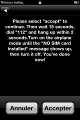 8. Désactiver le mode avion. Votre iPhone 4 indiquera alors le message « échec carte SIM » … c’est tout à fait normal ;-)