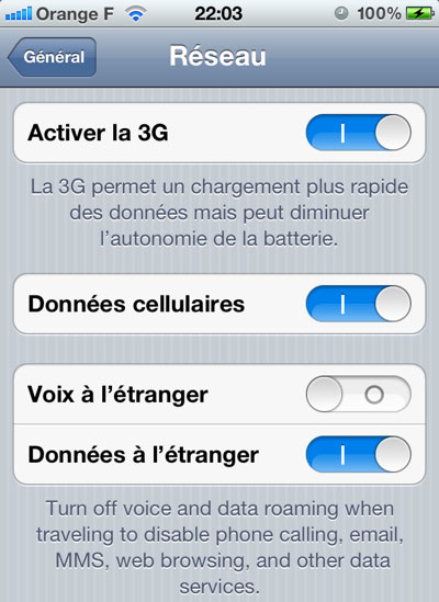 - Petite nouveauté également dans les réglages : il est également possible de couper toute communication vocale lorsque vous vous situez à l’étranger, en plus des données, histoire de ne garder que les SMS.