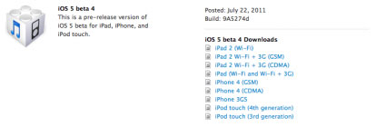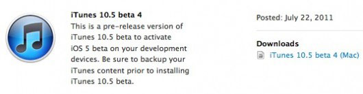 2) iTunes 10.5 beta 4 est disponible au téléchargement, et est nécessaire pour pouvoir fonctionner avec l’iOS 5.0 beta 4