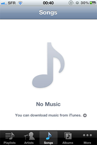 1) La musique ne s’affiche pas forcément, même si elle est accessible via les « Genres ». EDIT. A force de relancer l’application, la musique est soudainement apparue…