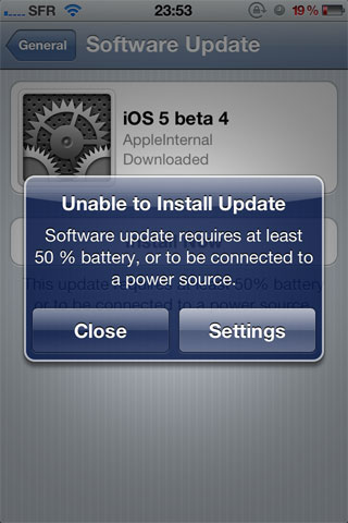 vouloir installer iOS 5b4 en étant pas dev, c’est comme cheater, laissez ça aux développeurs si ça s’appelle bêta c’est qu’il y a une bonne raison, et l’attente n’en sera que plus alléchante