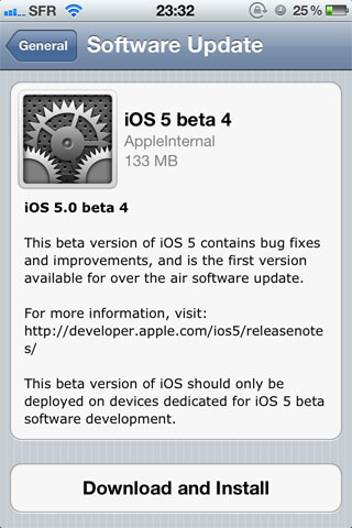 Apple vient de publier sur son iOS Dev Center l’iOS 5.0 beta 4.