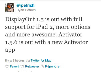 En plus d’activator, le développeur Ryan Petrich a mis à jour un autre de ses tweaks : DisplayOut, qui permet de connecter son appareil à un téléviseur pour y streamer son écran.