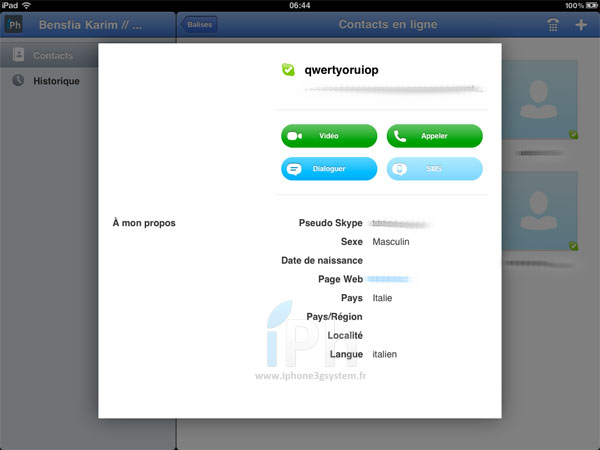 Aussi vous retrouverez toutes les options offertes par Skype sur Ordinateur dans l’application iPad.