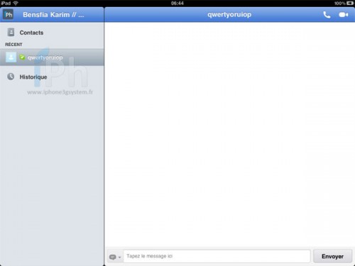 Voici l’interface de la conversation…