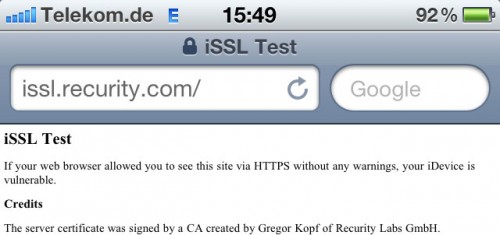 C’est ainsi qu’un paquet cydia a fait son apparition, isslfix, qui permet de combler cette faille sous les iOS 4.3.3 et 4.3.4.