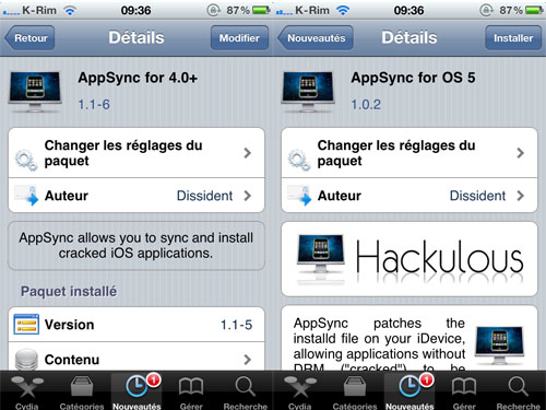 En ce qui concerne la mise à jour de AppSync for 4.0+, la version 1.1-6 apporte quelques modifications concernant la compatibilité avec les firmwares 4.x. Pour AppSync for OS 5, celui-ci est tout bonnement compatible avec les dernières beta de l’iOS 5.0, et permet tout comme sous iOS 4 de synchroniser vos applications téléchargées de façon tierces avec iTunes sans que celui-ci ne le détecte.