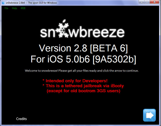 Le développeur canadien a mis à jour son outil de jailbreak sn0wBreeze en version 2.8b7, qui permet désormais le jailbreak de l’iOS 5.0 beta 7.
