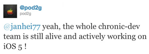 La Chronic-Dev Team a annoncé via son Twitter que toute la team de hackeurs, connue sous le nom de « Chronic-Dev Team », travaillait déjà sur le jailbreak de l’iOS 5.