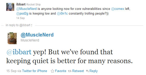 La question de « ibbart » est d’ailleurs légitime : Comex ayant rejoint les rangs de chez Apple et i0n1c ne travaillant pas sur le jailbreak actuellement, on ne sait pas vraiment qui travaille sur le jailbreak du prochain iOS dans la Dev-Team.
