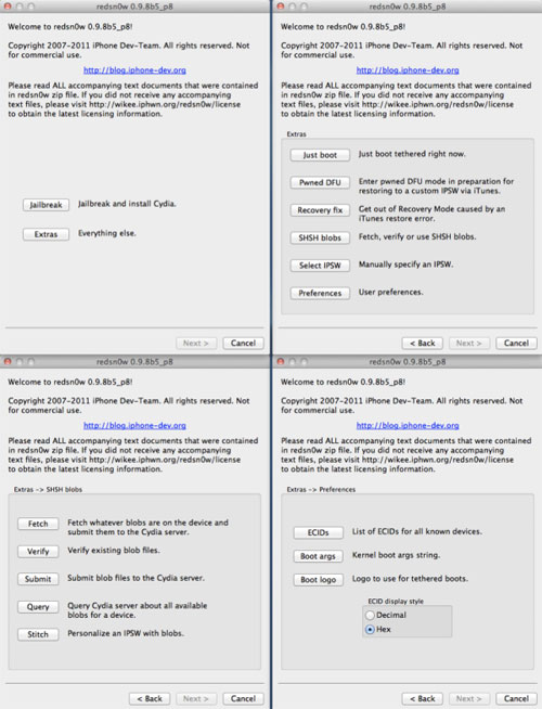 MuscleNerd a annoncé via son twitter qu’une mise à jour de redsn0w allait bientôt arriver. Cette mise à jour majeure apporterait énormément de nouvelles fonctionnalités, toutes visibles dans la capture d’écran ci-dessous.