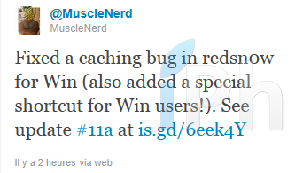 Cependant, MuscleNerd revient quelques heures après la sortie de RedSn0w 0.9.9.b3 avec une nouvelle plutôt sympa pour les utilisateurs de la version Windows.