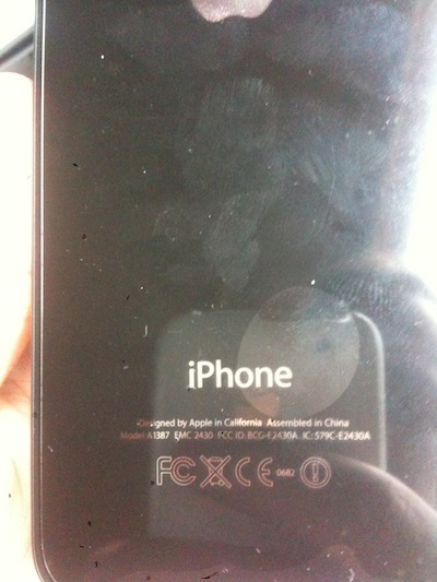 Le dos de l’iPhone 4S : aucune marque pour différencier l’iPhone 4 de l’iPhone 4S bien que le numéro noté ID, change.
