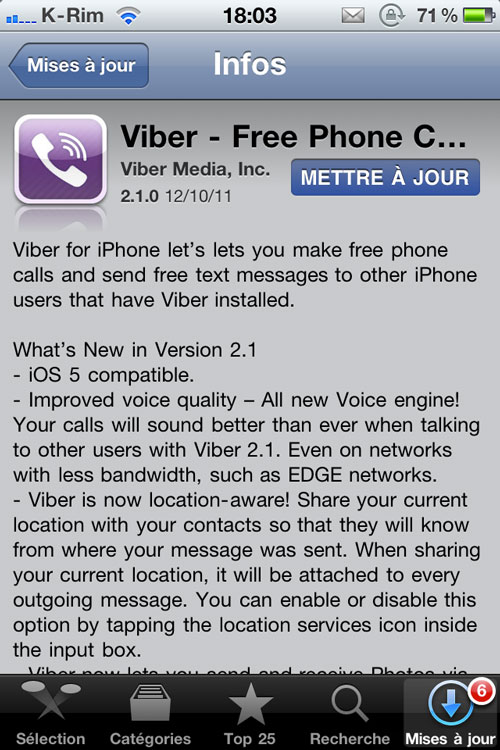 « Viber, célèbre application de téléphonie gratuite entre iDevices »