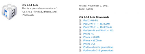iOS 5.0.1 beta contains improvements and other bug fixes including: