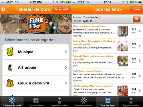Au lancement de l’application, vous aurez à choisir une des quatre catégories : Musique, Art Urbain, Lieux à Découvrir et Design ! Selon votre choix et votre position, l’application va localiser différents lieux à découvrir ou à redécouvrir ! Plus rien ne vous échappera, n’importe où dans le monde, devenez l’homme à suivre, épatez vos amis ! L’application offre en bonus la possibilité de signaler les adresses que vous avez appréciées, partagez les avec tous les utilisateurs et devenez un dénicheur expert ! Avec Ka Find It, soyez la star des bonnes adresses !