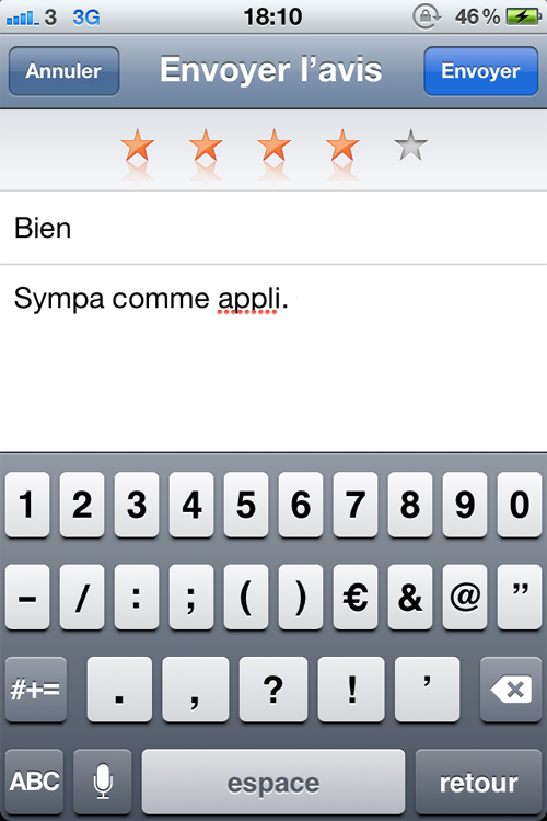 Et c une bonne App ! (commentaire sur App store plus long)