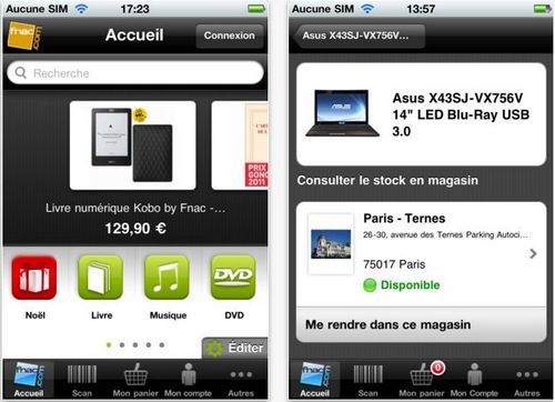 L’application des magasins Fnac est indispensable si vous vous rendez souvent dans votre magasin Fnac le plus près de chez vous. Scannez les codes barre des produits, accédez à toutes ses informations en détail, consultez votre compte adhérent, suivez vos commandes, trouvez le magasin le plus près et bien d’autres fonctions !