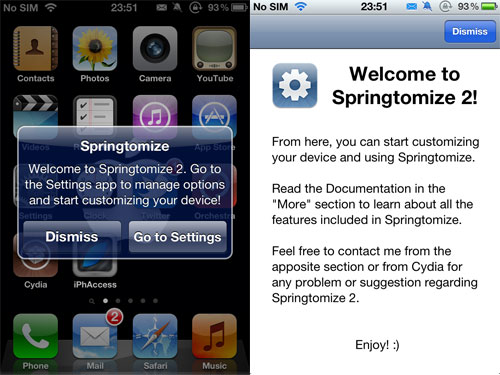 Le développeur Filippo Biga a annoncé qu’une mise à jour de son tweak Springtomize 2 avait été envoyée sur cydia apportant quelques correctifs à des bogues rapportés par les utilisateurs. La mise à jour est désormais disponible.
