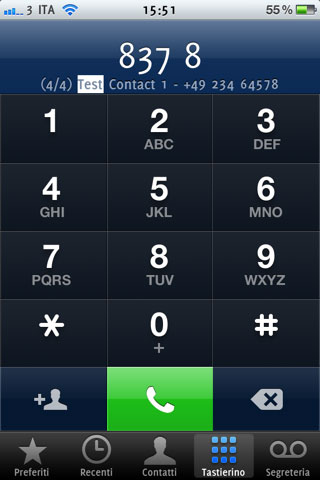 Au fur et à mesure que vous tapez Téléphones vous propose quelques suggestions qui correspondent avec le début de numéro que vous entrez. Le nombre de propositions est également affiché, et un simple glissé de gauche à droite (ou de droite à gauche pour revenir) vous permet de naviguer entre les propositions.