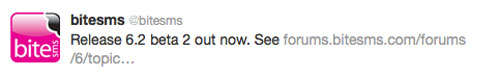 Nouvelle bêta pour BiteSMS qui passe désormais en version 6.2 Bêta 2. Celle-ci apporte quelques nouveautés et résout notamment un bug avec l’iOS 4.