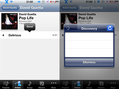 Désormais en restant appuyé sur une musique dans l’application Musique un nouveau bouton « Envoyer » apparaitra vous permettant de transférer la dite musique via bluetooth. Aucune mise à jour du tweak Celeste n’est nécessaire il vous suffit simplement de mettre à jour Action Menu.
