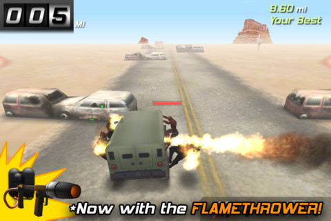 C’est l’anarchie sur Terre, les humains se transforment en zombie. Essayez de vous échapper en voiture, avec une route qui vous réserve quelques surprises…