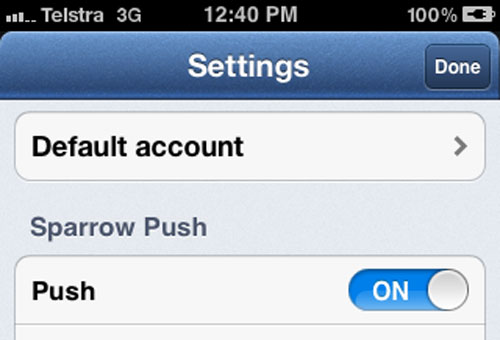 Le célèbre client mail Sparrow, qui a fait son entrée dans l’App Store iOS il y a très peu de temps, rencontrait une défaillance quant au push. En effet, il n’est pas encore possible de recevoir les pushs, un peu dérangeant pour un client mail…