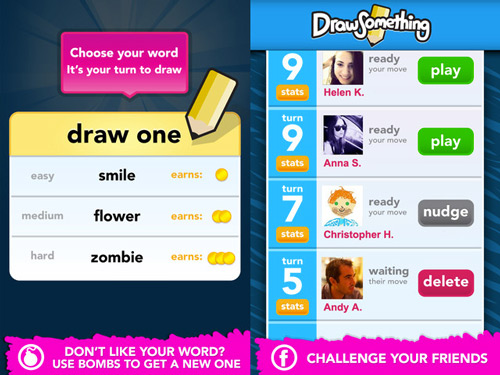 On notera tout de même deux « défauts » : le jeu est, pour le moment, entièrement en anglais mais aussi l’absence d’un classement ou de challenges, rendant Draw Something moins compétitif.
