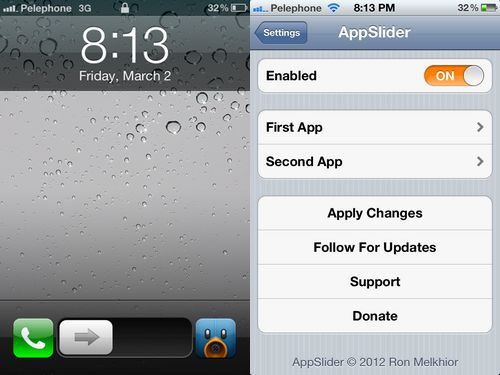 AppSlider est un tweak qui a fait son apparition il y a peu de temps sur Cydia. Il permet d’afficher deux icônes d’applications différentes aux extrémités du slider sur l’écran de verrouillage. Ces raccourcis vous seront d’une grande utilité si vous utilisez souvent les mêmes applications.