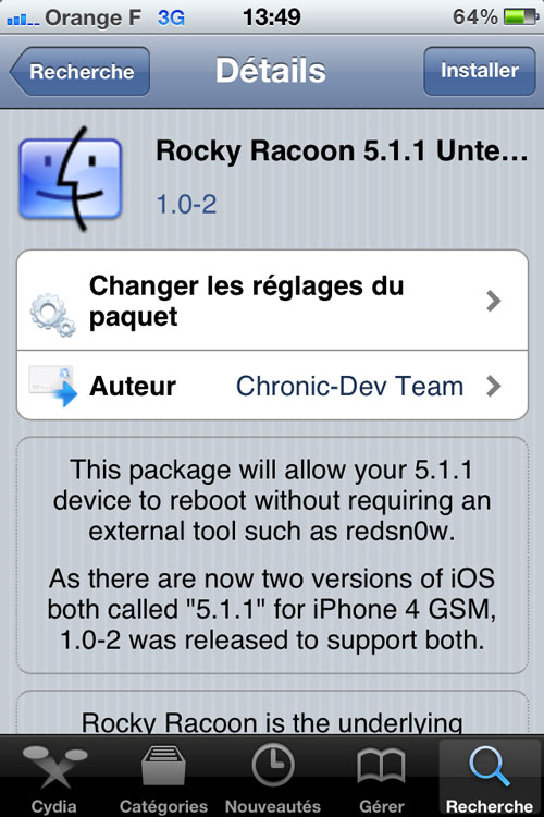 Rocky Racoon 5.1.1 est un utilitaire disponible sur Cydia permettant de passer d’un jailbreak tethered à un jailbreak untethered sans restauration nécessaire. Après installation de l’utilitaire, veillez à bien redémarrer votre iPhone ou iPod. Vous pouvez aussi retrouver notre tutoriel de jailbreak à cette adresse.