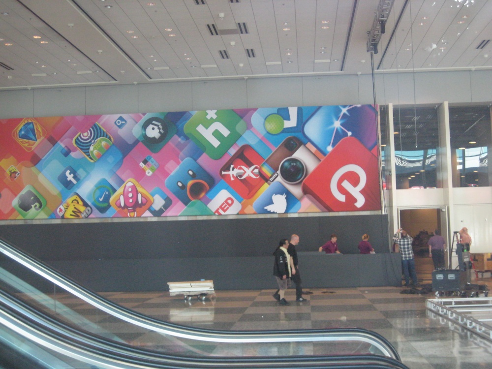 À quelques jours de la WWDC (11 juin 2012), le Mosconne Center, où se déroulera l’événement, commence à être décoré des bannières Apple. La WWDC accueillera près de 1500 développeurs venus des quatre coins du monde. Nous attendons beaucoup de nouveautés de la par d’Apple, iOS 6, nouvelle gamme MacBook, iMac… Pour le moment place à quelques clichés pris par 9To5Mac.