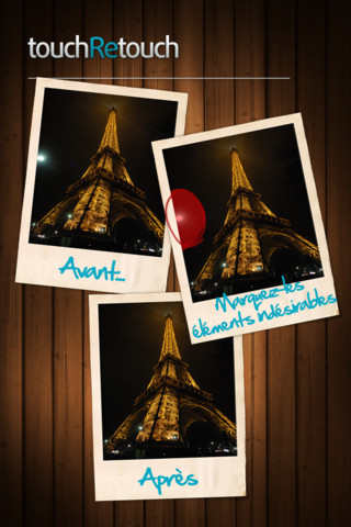 TouchRetouch est une application révolutionnaire qui vous permet de supprimer les contenus et éléments indésirables de vos photos, et ce par simple pression tactile sur vôtre iPhone. Sélectionnez les éléments que vous souhaitez supprimer de l’instantané et appuyez sur ‘Go’. C’est aussi simple que cela!. Retoucher vos photos n’a jamais été aussi rapide, facile et pratique. Cliquez sur « Suite » et découvrez pourquoi vous devez télécharger cette application dès aujourd’hui!