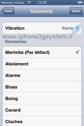 – Le menu « Vibration » est maintenant dans le menu « Sonnerie ».