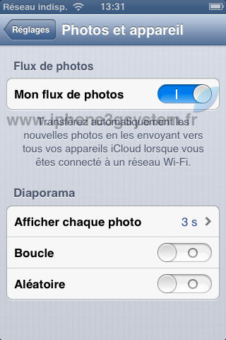 – Possibilité d’activer ou non Photo Stream via iCloud