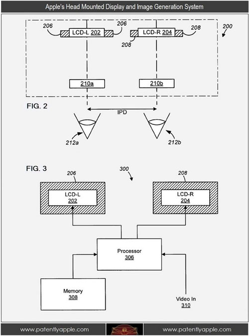 Apple brevet Head-mounted display iGlass iphone iPod LCD lunette OLED