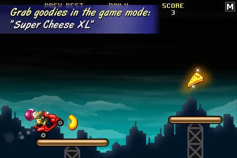 Retrouvez les aventures du célèbre Rat de Donut Games sur son scooter. Votre but étant de faire le plus gros score en ramassant les bonus et le fromage.