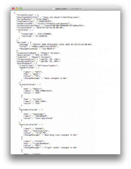 Une fois les informations entrées, l’auteur devra signer numériquement son billet afin de le valider. Le document pourra ainsi être mise en forme et lisible à la fois sur votre bureau (comme ci-dessous), mais aussi dans n’importe qu’elle application et bien sûr dans l’application Passbook.