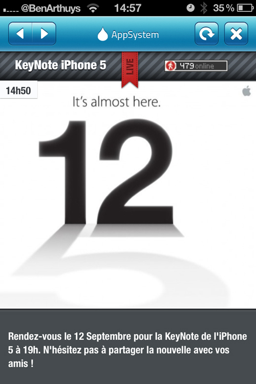 Rectification de dernière minute : Apple KeyNote le 12.12.2012 et non le 12.09.2012