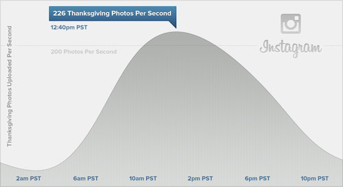 Plus de 200 photos ont été téléchargées à la seconde pendant la journée de Thanksgiving, ce qui fait de cette journée un record pour Instagram.