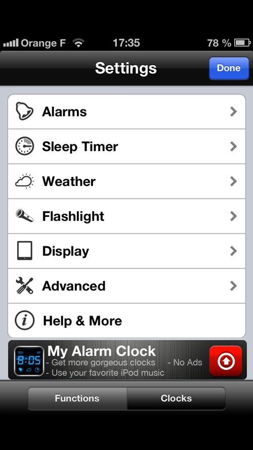 L’application comprend aussi une lampe de poche (un double tap permet de l’activer, très pratique durant la nuit!) ainsi que le mode Minuteur. De plus il est possible de gérer la luminosité d’un simple clic, d’assigner des réveils multiples et de s’endormir avec des sons relaxants.
